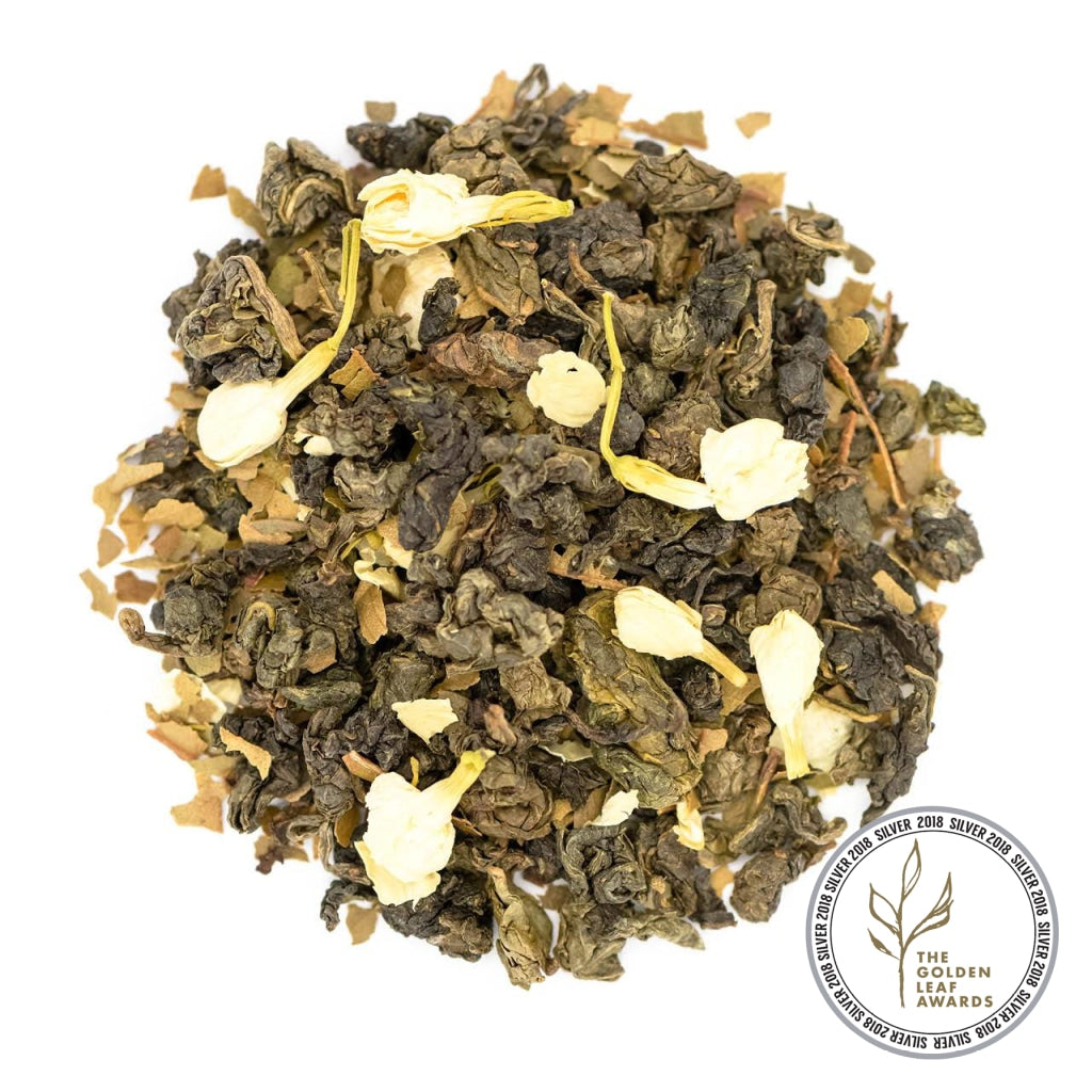 Tielka's Midnight Blossom oolong tea is a blend that features Tieguanyin oolong tea, Australian-grown lemon myrtle, and jasmine flowers. It won silver in the 2018 oolong blend category of the Golden Leaf Awards.
